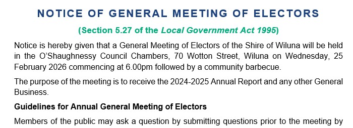 The Guidelines for Annual General Meeting of Electors (AGM) can be read and/or downloaded from the Shire's website at: