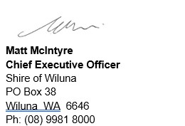 sending an email with the subject line "Public Question Time" to reception@wiluna.wa.gov.au.